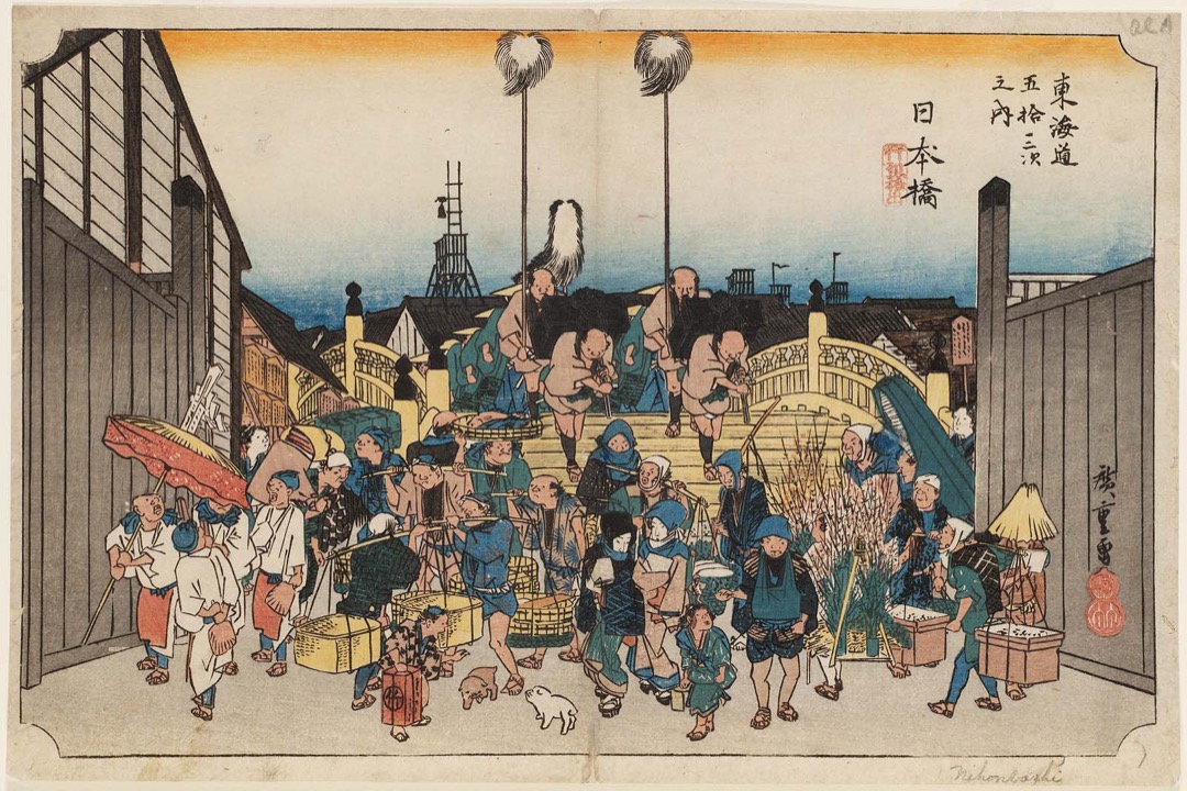 名所绘(日语:名所絵,めいしょえ),为日本浮世绘中的风景画风格,绘画内容除了象征时人对山明水秀的憧憬,也作为当时旅游手册资料的运用。“名所”这个用语源自江户时期的观念,也就是“开始关心与收集与某个场所相关的情报”。江户时期政局稳定、交通便利并具有一定的经济实力,名所绘就在当时旅游风气兴盛下蓬勃发展。葛饰北斋的《富岳三十六景》,与歌川广重的《东海道五十三次》,为名所绘里地位举足轻重的作品,更奠定了往后名所绘画风的发展。 《富岳三十六景》是日本浮世绘画家葛饰北斋创作于晚年的代表作,过人之处在于以同一主体变化出各不相同的画面, 每幅画面的视点均有实际依据,其中有13幅自江户,4幅自江户郊外,3幅自江户东部的其他地区,18幅自东海道各地,7幅自富士山所在的山梨县,最后以富士山顶的局部近景结束。每一幅都以富士山为背景,与人们的劳动、生活场面巧妙结合,在动与静、晴与雨、波涛与富士山等对立关系的构成上,结合典型的日本传统线描纹样及装饰性色彩,以西方绘画的透视原理和明暗对比手法拓展画面空间及深度。此系列获得广泛好评,在当时掀起了“名所绘”新的创作高潮,对后世亦影响深远,欧洲印象派画家莫奈、高更收藏了该系列作品,并深受其创作风格影响。系列中的《神奈川冲浪里》一幅更举世闻名,成为日本美术的世界性标志性作品。描绘富士山“赤富士”、“黑富士”形态的《凯风快晴》和《山下白雨》也是这个系列的经典之作。 from wiki