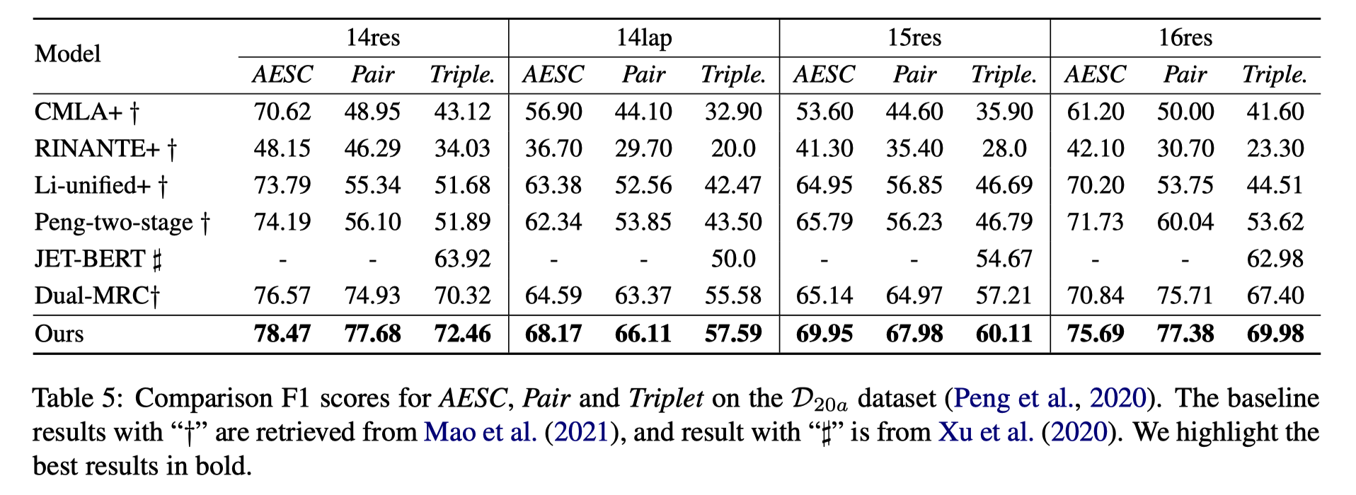 <a, o, s>triplet form. - Peng et al. (2020), where the missing triplets with overlapping opinions are corrected.