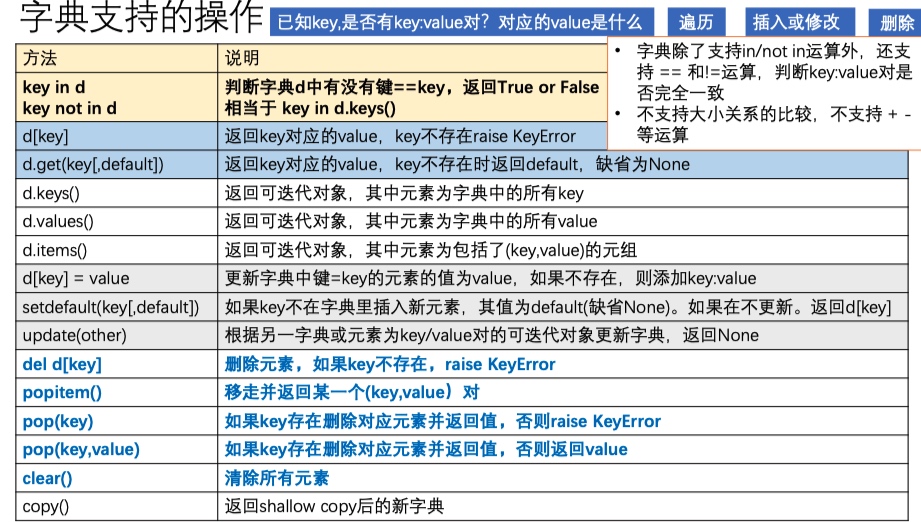 - 如果要求保留插入顺序,应该采用collections.OrderedDict,dict的所有方 法都可以使用
