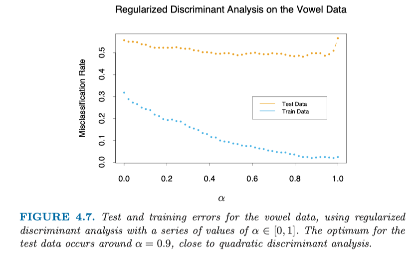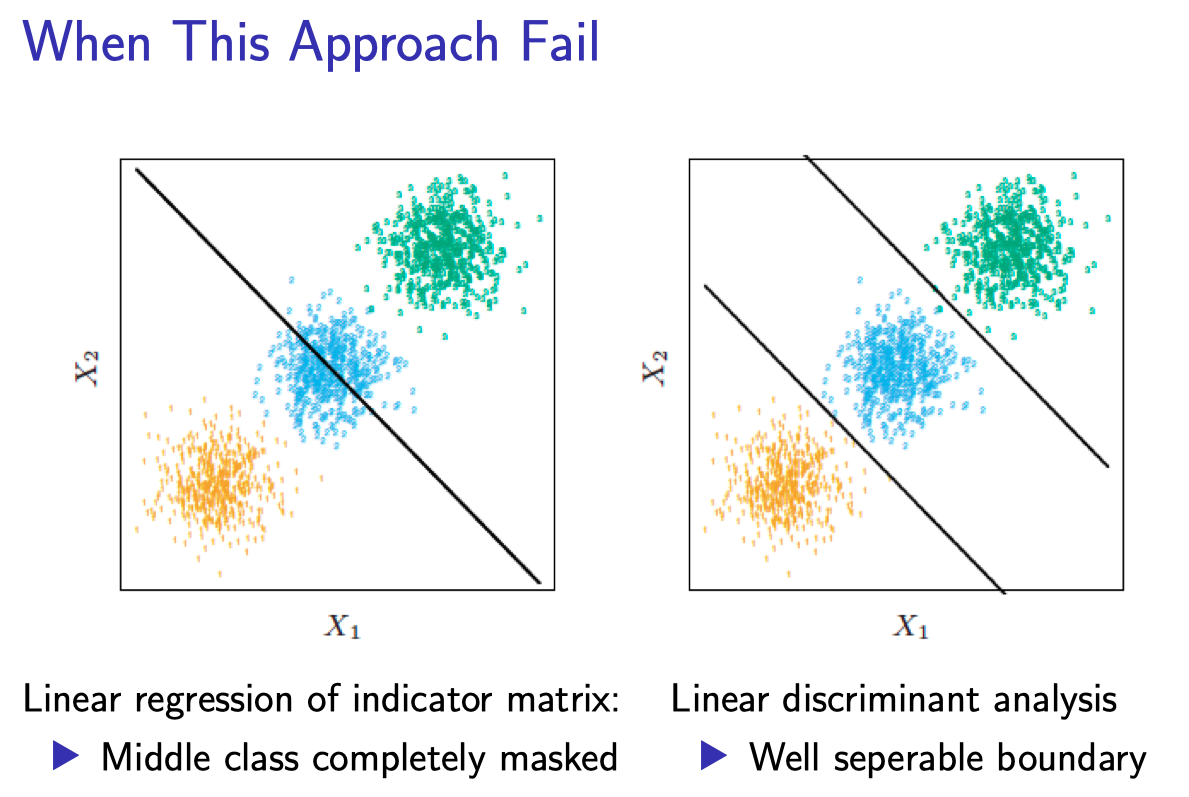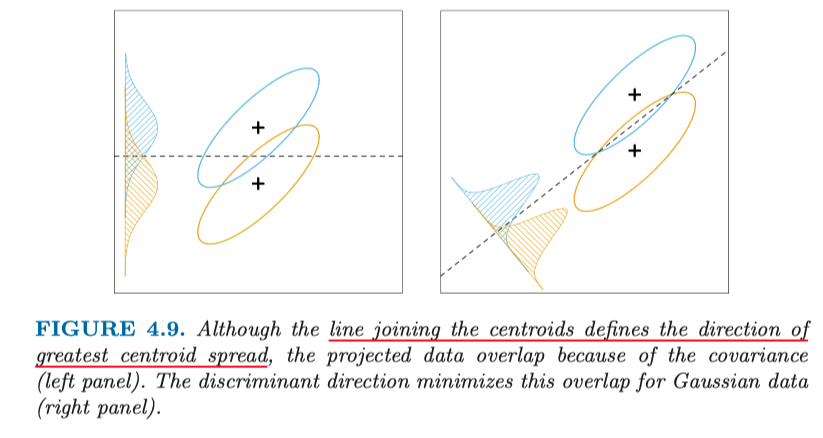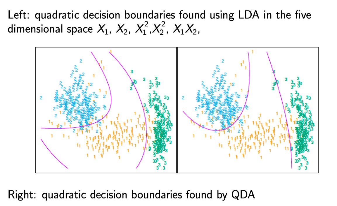 - LDA can estimate parameters more efficiently (lower variance). 通过以来额外的模型假设, 可以得到更多的参数信息, 因此方差更低